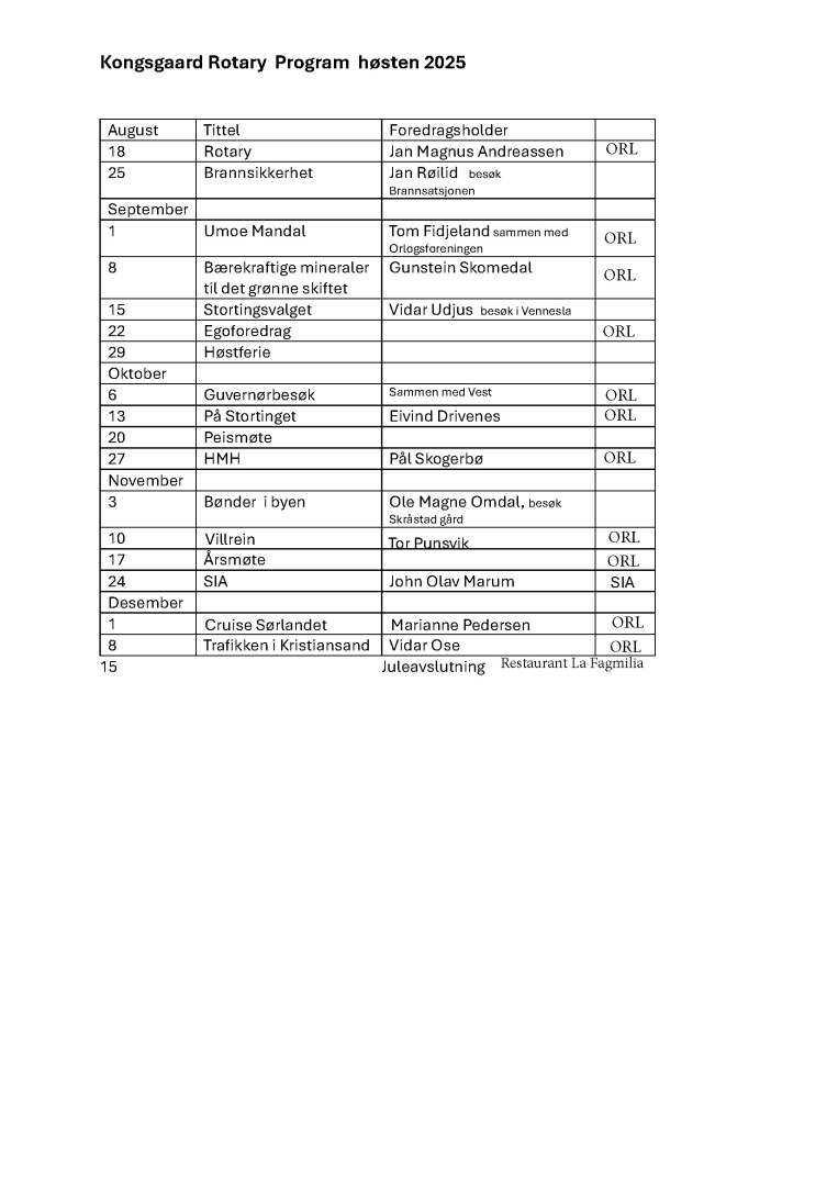 KONGSGAARD ROTARY KLUBB ØNSKER DEG